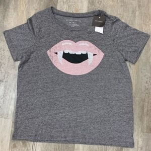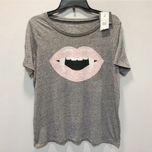 NWT Grayson Threads Heathered Gray Crew Neck T-shirt Vampire Lips Women's Medium