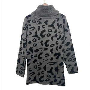 NWT Grecerelle Sweater Gray Cheetah Cowl Neck Asymmetric Button Tulip Hem Size M