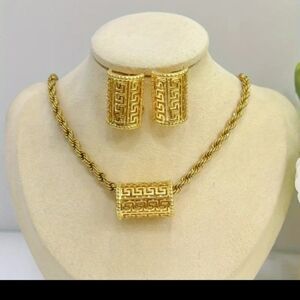 NWT Greek Key Design Chunky Gold Tone Necklace