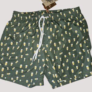 * NWT Green Glasses of Beer Print Trunk Bathing Suit Mens SMALL