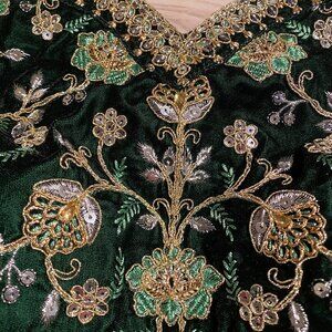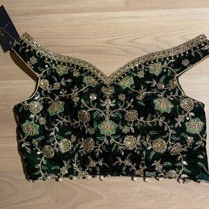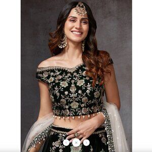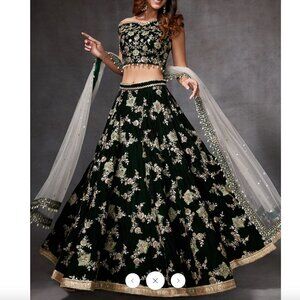 NWT Green Heavy Embroidered Velvet Lehenga Choli with Dupatta