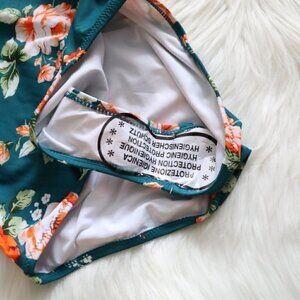 NWT Green One Piece Bathing Suit Size XS Orange Floral Print Boho