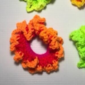 NWT Green Orange Neon Handmade Crocheted Hair Scrunchie by Dawny Set of 4