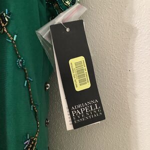 Adrianna Papell New Years Eve Holiday Party Formal 1920s Art Deco Old Money Aesthetic Green Sequins Beads Mesh Overlay Top