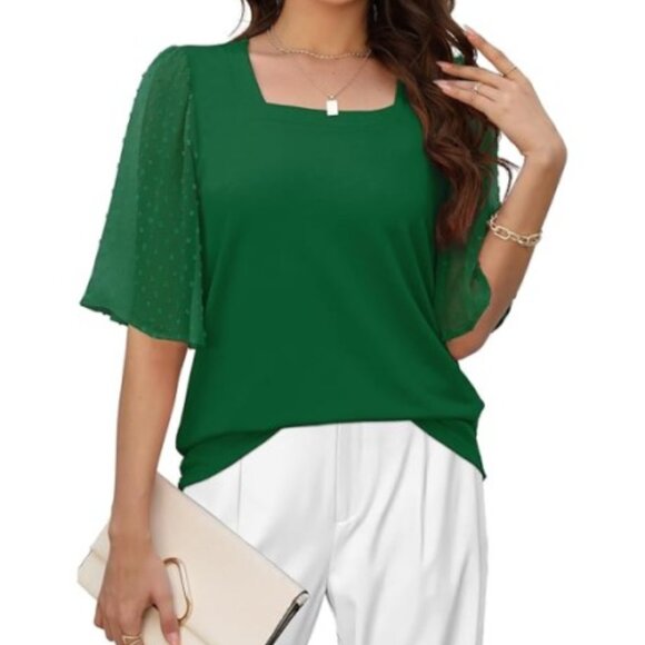 NWT! Green Square Neck Flutter Bell Sleeve Swiss Dot flowy Tunic Top PLUS