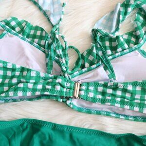 NWT Green and White Gingham Printed Bikini Set Size Small