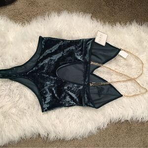 NWT! Green crush soft velvet interchangeable gold chain strap bodysuit