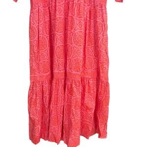 Viviers dress sultans dining room, bright pink and red paisley pattern, midi dress, zipper side, pockets, cotton