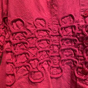 NWT Gretty Zueger Top Women Large Red Bohemian Embroidered Crochet Button Up