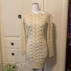 NWT Greylin Greya Cable Knit Mini Sweater Dress, Cream