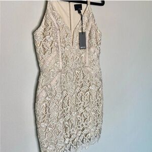 NWT retail $170 Greylin Anthropologie Olivia Lace Cream & Gold Crochet Dress