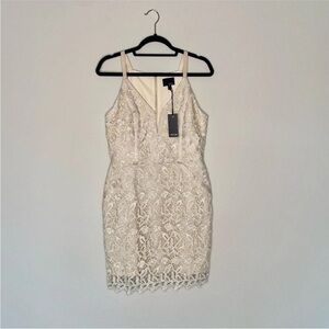 NWT Greylin Lace Cream & Gold Crochet Dress Size Medium Anthrpology Retail $170