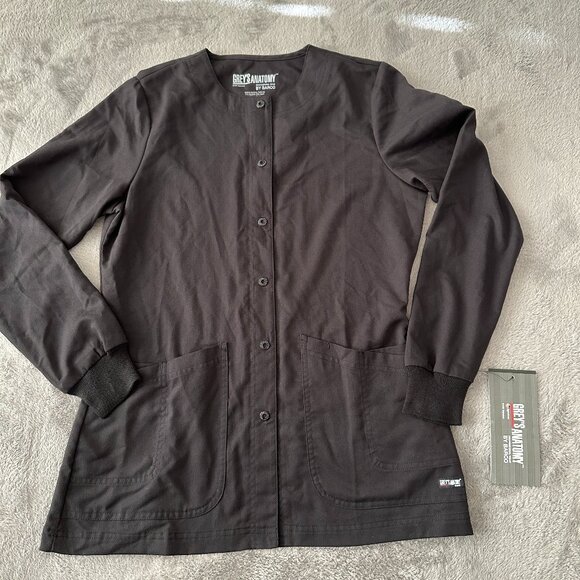 NWT Grey's Anatomy by Barco Black Scrubs Top Jacket Button Up Women's SMALL