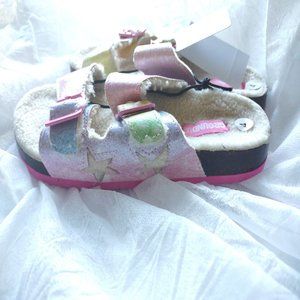 NWT Ground Up Sherpa Slipper Sandals Girls Rainbow Glitter
