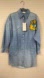 NWT Gucci Bleached Denim Snap Front Dress with 3D Cat Brooch Long Sleeve Sz 36