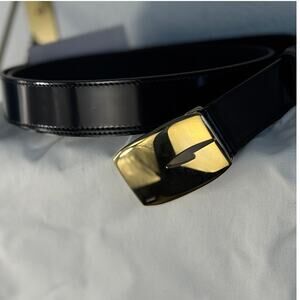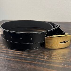 NWT Gucci By Tom Ford G Logo Black Leather and Gold Belt