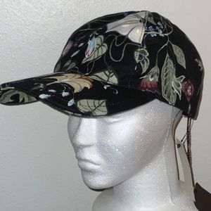 We guarantee this is an authentic GUCCI Canvas Flora Knight Baseball Hat S Black or 100% of your money back. This sporty yet stylish cap is crafted of Gucci GG monogram canvas with a floral print. This medium cap features a 3 inch rim extending from the cap itself, that is 7.25 inches in width with a snap band to fit perfectly. This is an excellent cap for everyday use from Gucci!