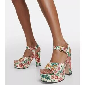 NWT Gucci Floral Horsebit Platform Ankle Strap Block Heel Sandals EU 38.5
