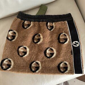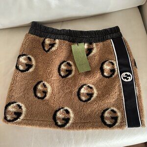 NWT Gucci Interlocking G wool-blend fleece miniskirt Sz L 100% Authentic
