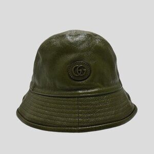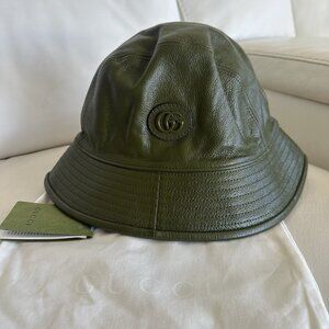 NWT Gucci Leather Double G Bucket Hat Dark Green 100% Authentic Sz S