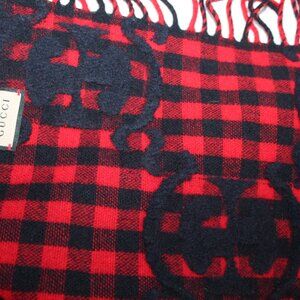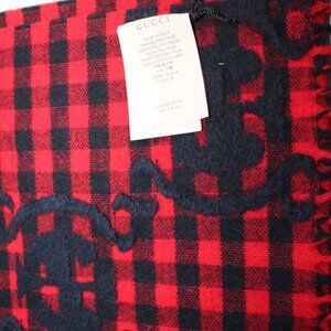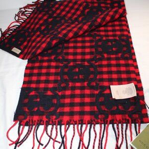 NWT Gucci Red Black Diamond Check GG Logo Scarf Wool Blend