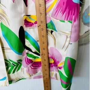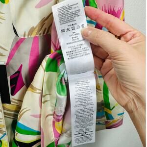 NWT Gucci Silk Tan Pink Blue Multi Floral Leaf Printed Blouse 46 / XL