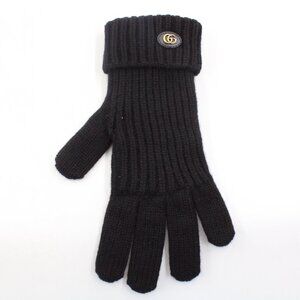 NWT Gucci Wool Cashmere Gloves with Double G Patch in Black/Gold (L)
