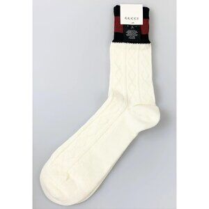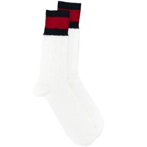 ♥A must-have for the sophisticated man's winter wardrobe, these white wool blend knitted socks feature a preppy red and black contrasting top and classic diamond knit pattern.