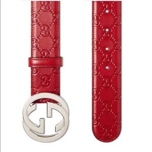 The interlocking G buckle belt, made in heat debossed Gucci Signature leather with a defined print and firm texture.