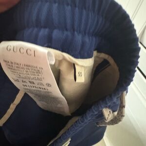 Brand new mens Gucci Stylish and comfortable blue pants, perfect for any occasion. Fits men's large and /xl adjustavle waist big Gucci white name on back going down