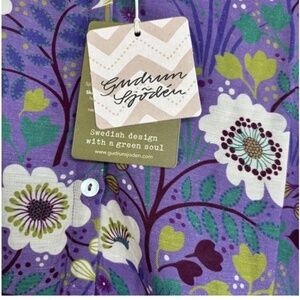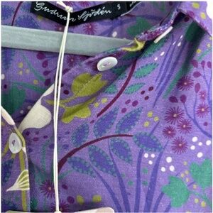 Embrace casual elegance with this Gudrun Sjoden sundress, featuring a vibrant purple hue adorned with white floral patterns. The dress boasts long bishop sleeves and a notched collar, offering a relaxed yet stylish look. Its midi length and comfortable fit make it perfect for everyday wear. Measures 20” pit to pit, 45” shoulder to hem. Super cute and flowy. Made of linen