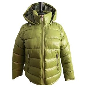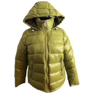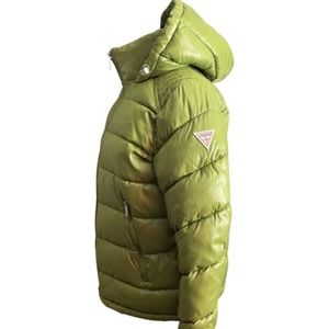 NWT Guess Cire Hooded Puffer Jacket Duck Down Olive Green Women's Size M $150