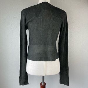 Super flattering, stylish, and soft crop sweater top by guess. It measures 16 inches armpit to armpit laying flat and is 19 inches in length from the shoulder to the hem.