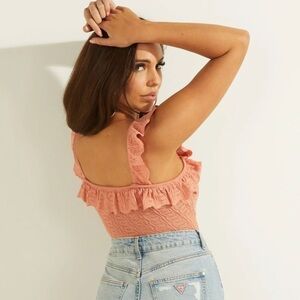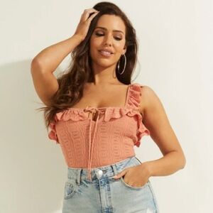 NWT Guess Elia Ruffled Pointelle Sleeveless Tank Top Peach/Pink XL