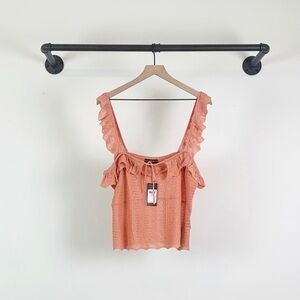 NWT Guess Ruffled Pointelle Sleeveless Tank Top Peach/Pink XL