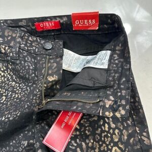 NWT Guess Jeans Womens 26x28 Black Metallic Leopard Rinse Katrina Mid Rise Denim