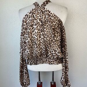 NWT Guess Leopard Print Cold Shoulder Top Size M