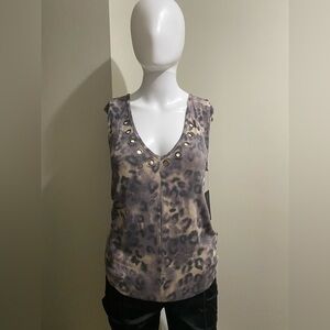 Dark Chino Mutli color leopard print tie up top, missing ties in stock photo