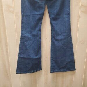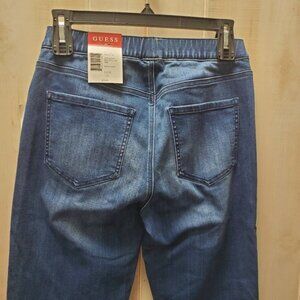 Dark denim. Fit and Flare cuff. Pull on style. Faux front pockets and faux crotch/zipper area - non functioning. 2 real slip in back pockets! Slimming and stretchy! Deadstock.