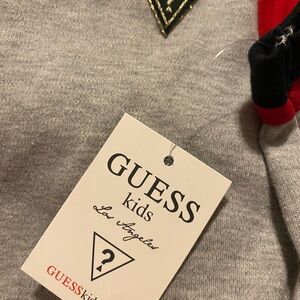 New with tags Short sleeve gray, red, and black romper Guess Size 6-9 months Smoke free home