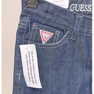 New with tags, these Guess jeans are the Del Mar Fit and are a straight SLIM. They are a cotton/poly blend and feature a button/zipper closure. They have waist adjusters on each side.