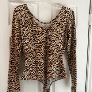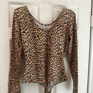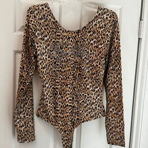 NWT Guess Spanish Cheetah Desert Animal Print Long Sleeve Bodysuit Top Size L