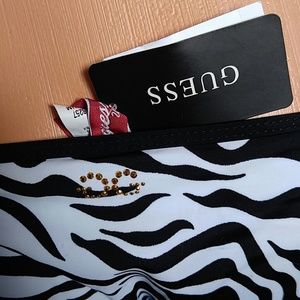 NWT Guess Teeny Zebra Weeny shimmer print black white bikini string pant M