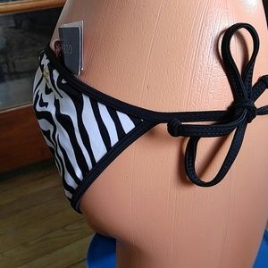 Wow wow.. Something in the fabric makes the front shimmer. Side ties, logo on back, zebra.. Hot hot.
