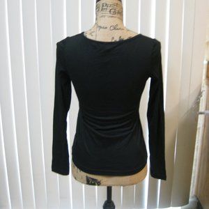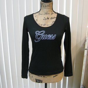 NWT Guess black long sleeve tee t shirt top size XS extra small. Rhinestone studded logo across the front. Sexy scoop neck. Brand new, never worn. Original price: $34.99