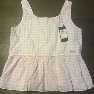 NWT Guess Big Girls 7-16 Sleeveless Popeline Gingham Tank Pink/White