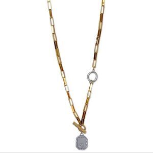 NWT Guess Two-Tone & Crystal Y 20in. Necklace