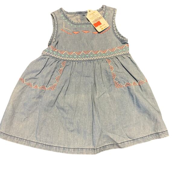 NWT Gymboree Baby Denim Blue Dress Embroidered Aztec 3-6 Months Girls