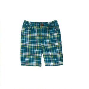 Plaid Shorts in Deep Teal Blue/ Green/White with Elastic Waist, Button Closure, 2 Side Pockets and 2 Back Pockets. Shorts are 100% Cotton.