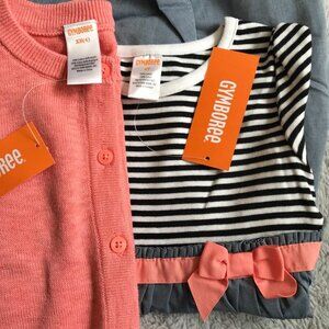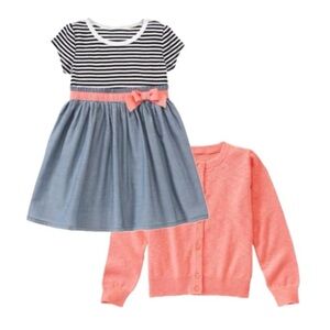 NWT Gymboree sz 4T chambray stripe dress, sz XS (4) coral cardigan, lot of 2 NEW